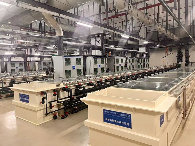 通过高效电解提铜技术,将废液中的铜离子还原为纯度高达99.5%以上的致密铜板,可直接作为高价值产品出售。同时,蚀刻药水得以高效再生回用,大幅降低了新鲜药水的采购成本。据行业实践反馈,综合铜板收益与药水节省,每吨蚀刻废液可为企业新增可观收益。生后的蚀刻液在蚀刻速度、蚀刻因子等关键指标上与新鲜药水保持一致,确保了生产线效率稳定,产品品质无下降,彻底解决了再生液拖累生产的传统弊病。于精准的药剂配方与再生工艺控制,使用再生药水蚀刻出的线路板,在线宽、线距精度及表面质量上与使用新液无异,有效保障了高端产品如HDI板、高多层板的加工要求。现了全流程密闭循环与物料回用。电解产生的氯气被独创的射流吸收与多级吸收塔工艺完全回收,转化为次氯酸和盐酸回用于蚀刻线,避免了气体污染。处理后的清液铜离子含量极低,无需作为危废排放,极大减轻了环保压力。率趋近100%,蚀刻液再生比例可达80%-95%,仅产生极少量需最终处理的残液。企业因此无需再将含铜废液作为危废对外销售或委托处理,实现了资源与处置流程的完全自主掌控。视为污染物的氯气,转化为再生药水所需的有效成分,既消除了安全隐患,又降低了氧化剂与盐酸的添加量,综合节省率显著。路径避免了盐类结晶析出,设备无需频繁停机清理,降低了维护成本,保障了生产的连续性。RP(氧化还原电位)、氯气浓度等多参数在线监测,并与湖南大学合作研发智能控制系统,实现自动化运行与异常预警,具备多重安全防护机制,确保运行可靠。