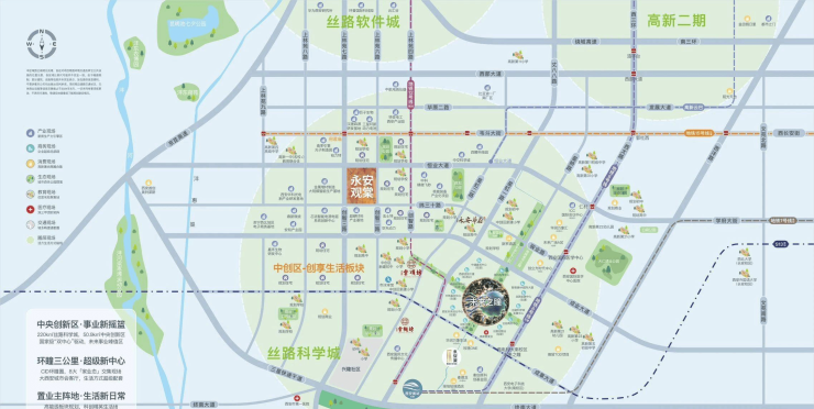 西安天地源永安观棠项目位于高新区,主打改善型住宅,配套齐全,融合文化与生态,拟打造未来宜居社区。
